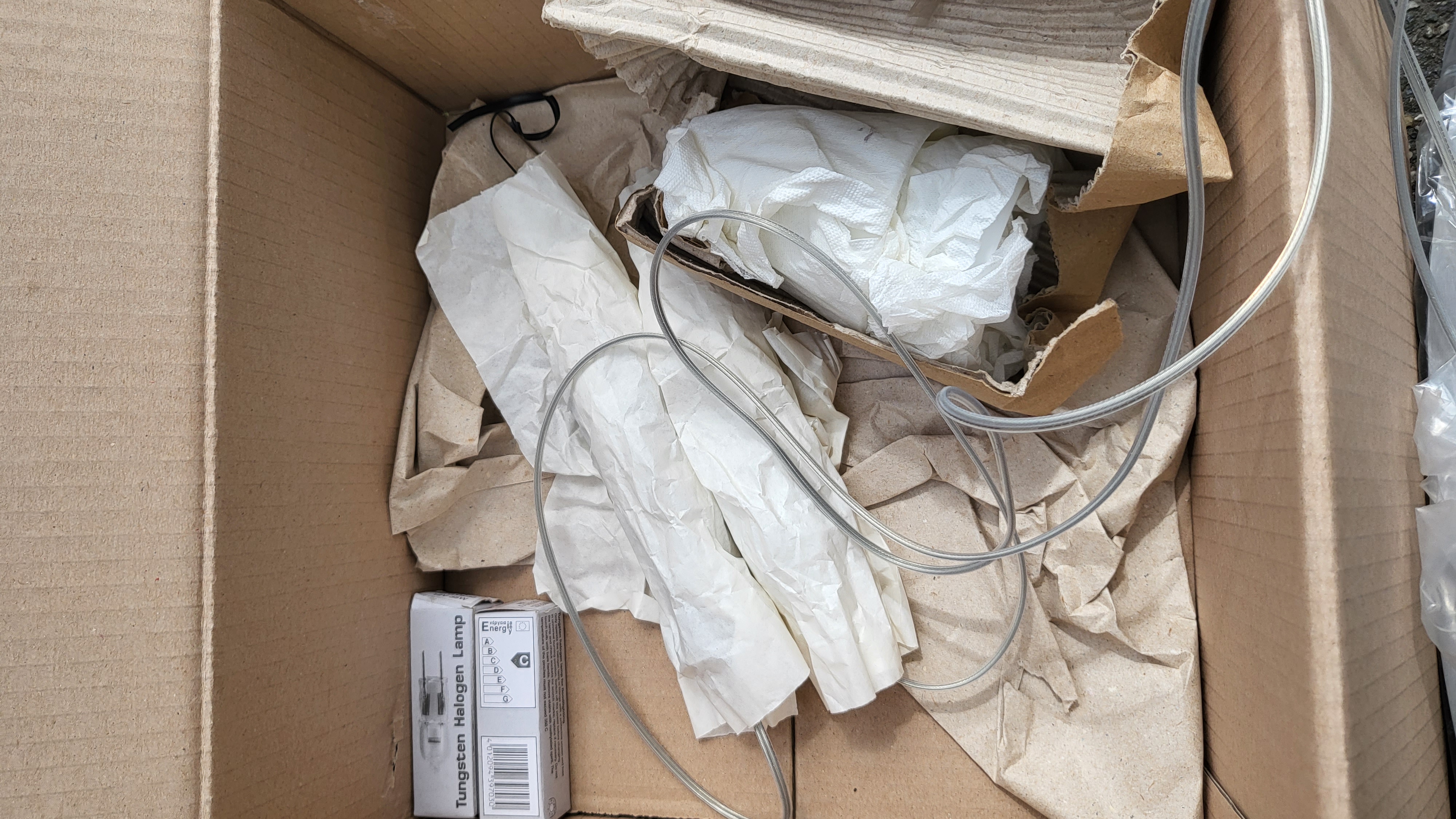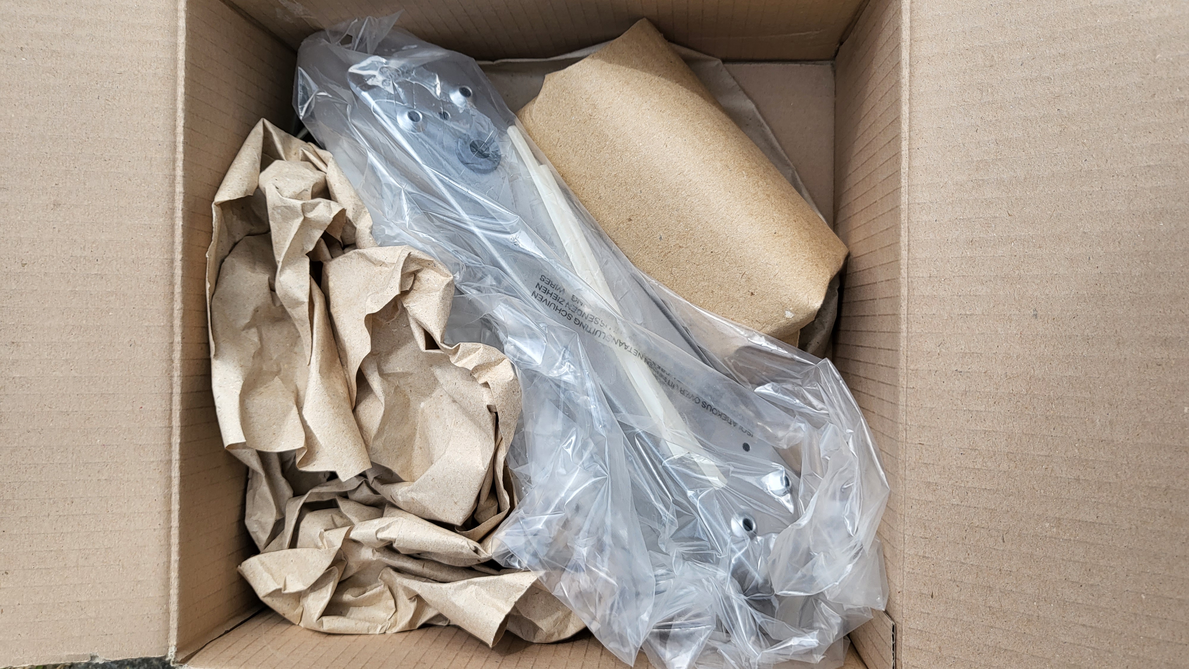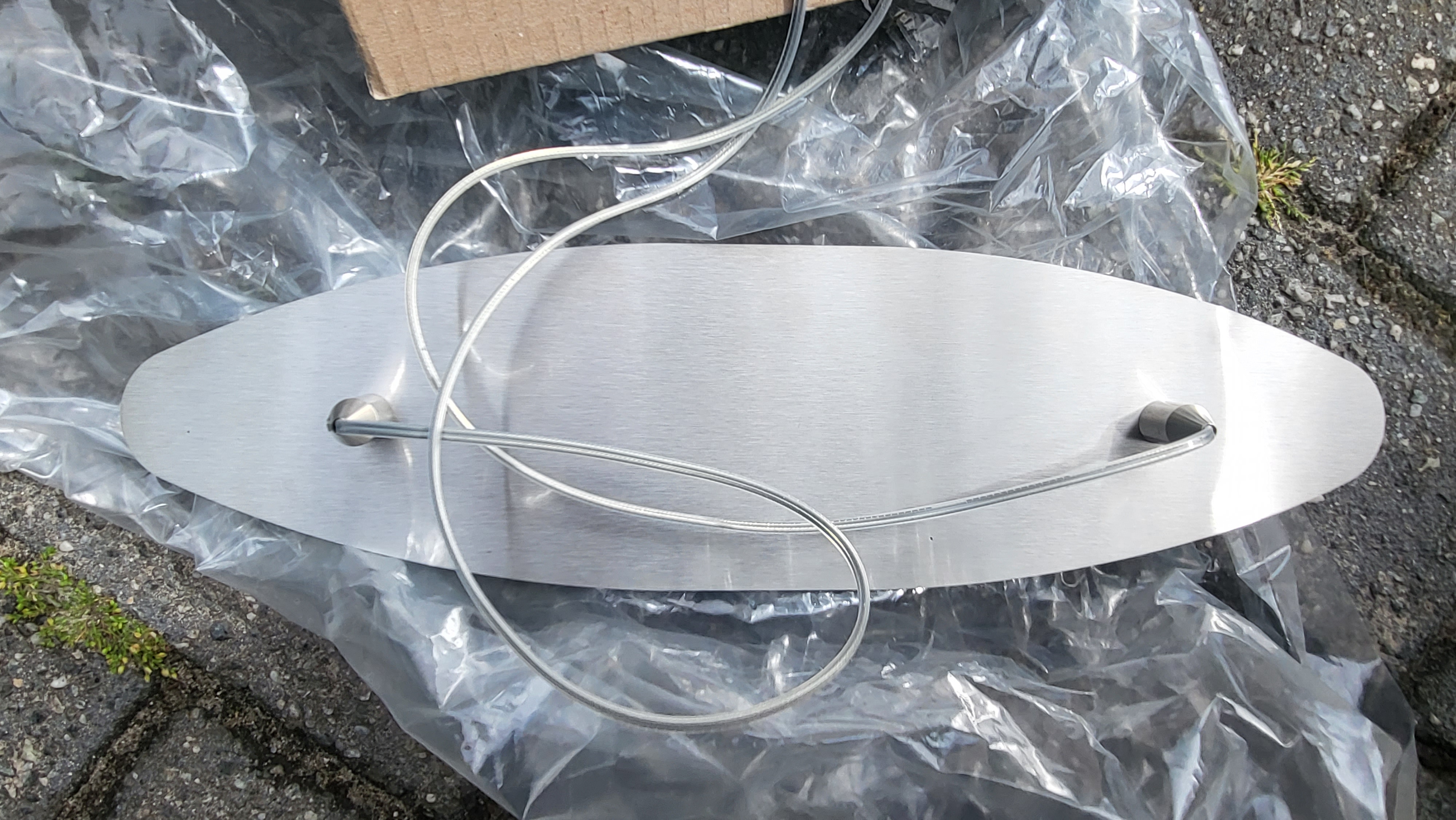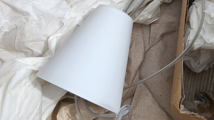 Mooie nieuwe hanglamp met wit glazen kapjes en rvs behuizing.